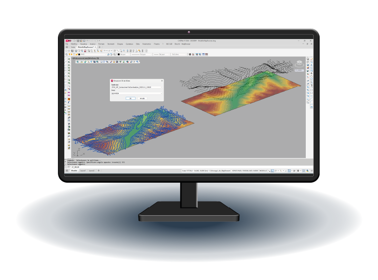 • Importazione e possibile elevazione 3D di curve di livello da file in formato Shape
